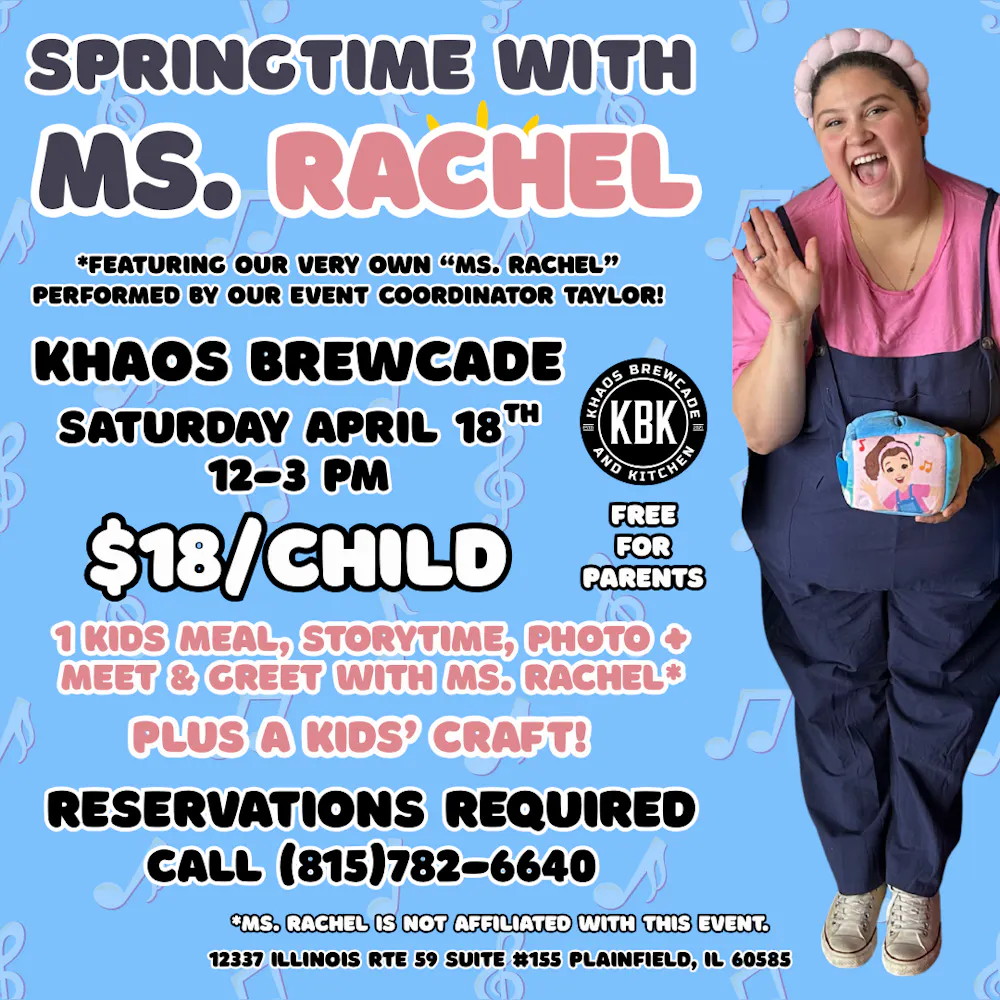 Springtime with Ms Rachel at Khaos Brewcade - Saturday 4/18 from 12-3 PM