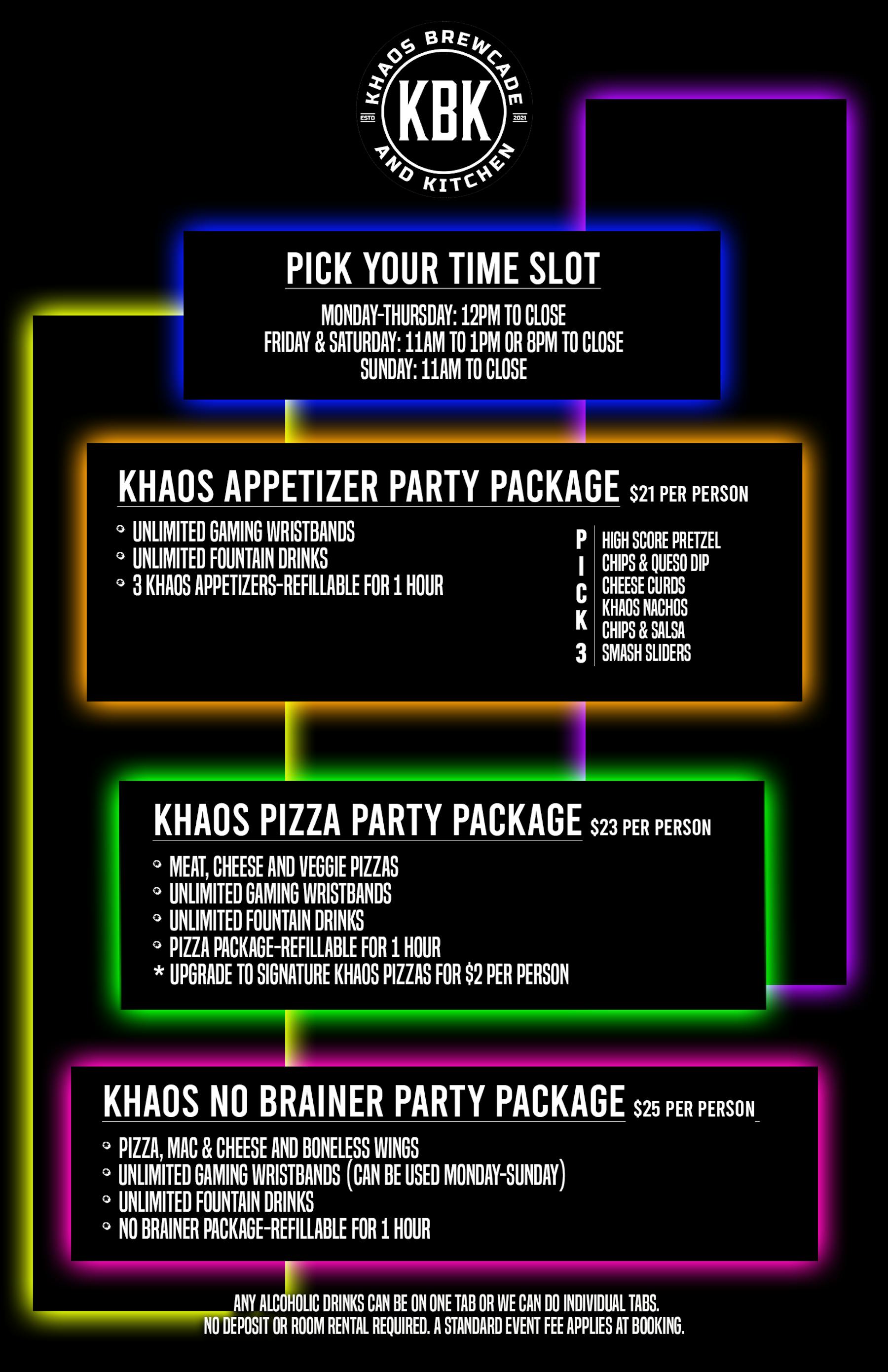 Thank you for considering Khaos Brewcade for your Party or Event.
